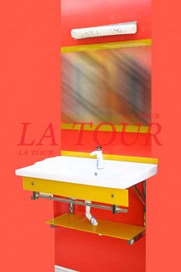 MEUBLE DE DOUCHE LAVABO+MIROIR BORDURE JAUNE (X67M7004) BLANC JAUNE